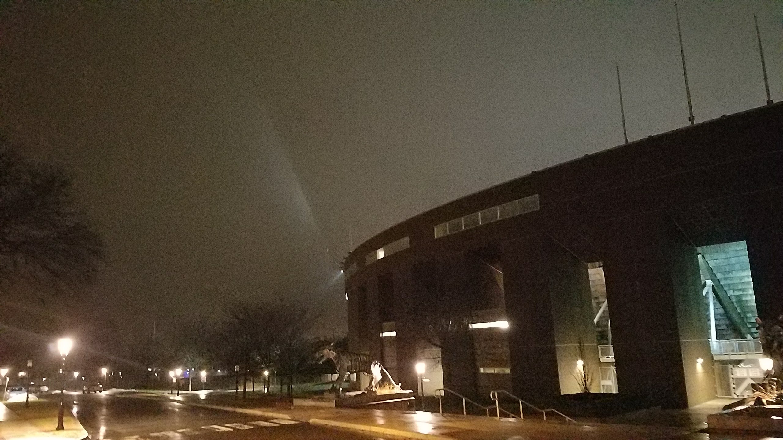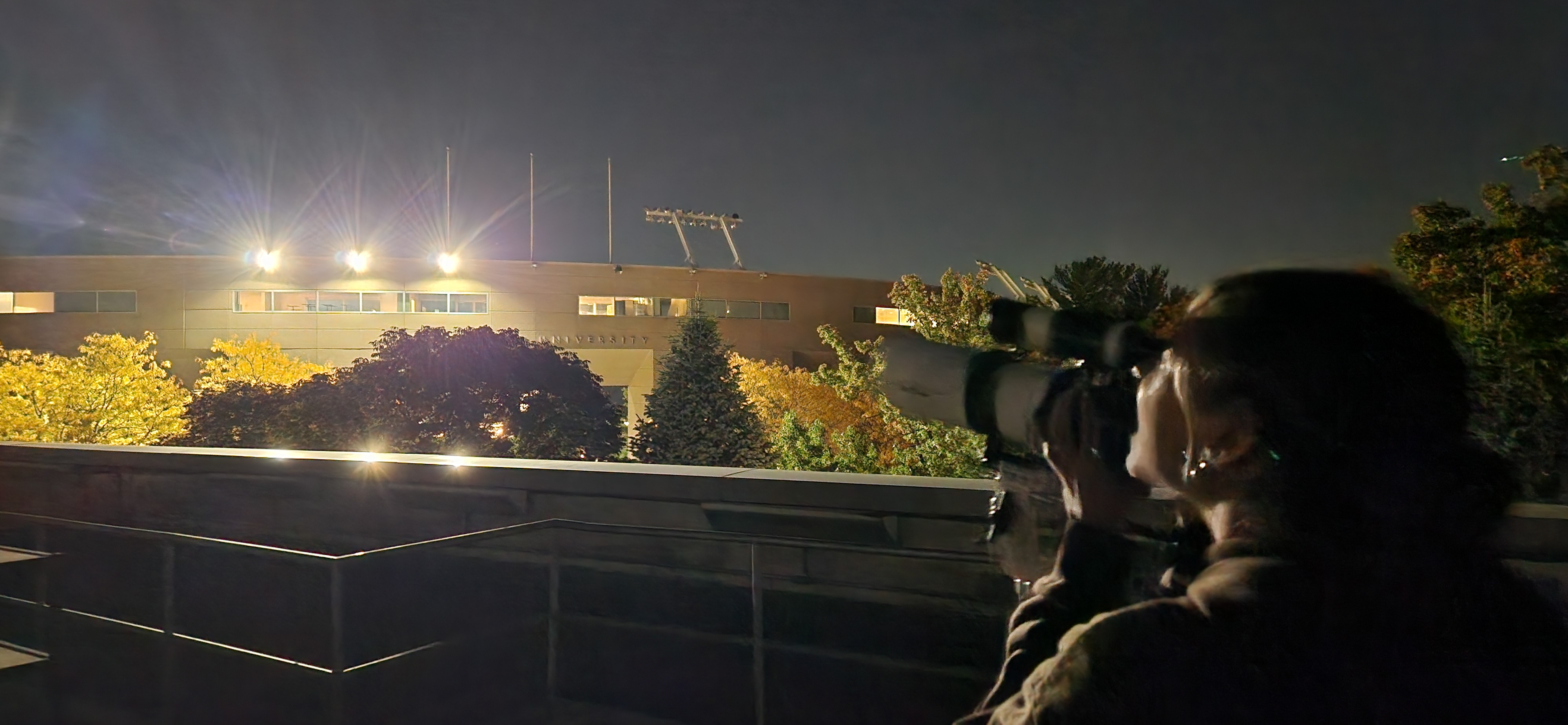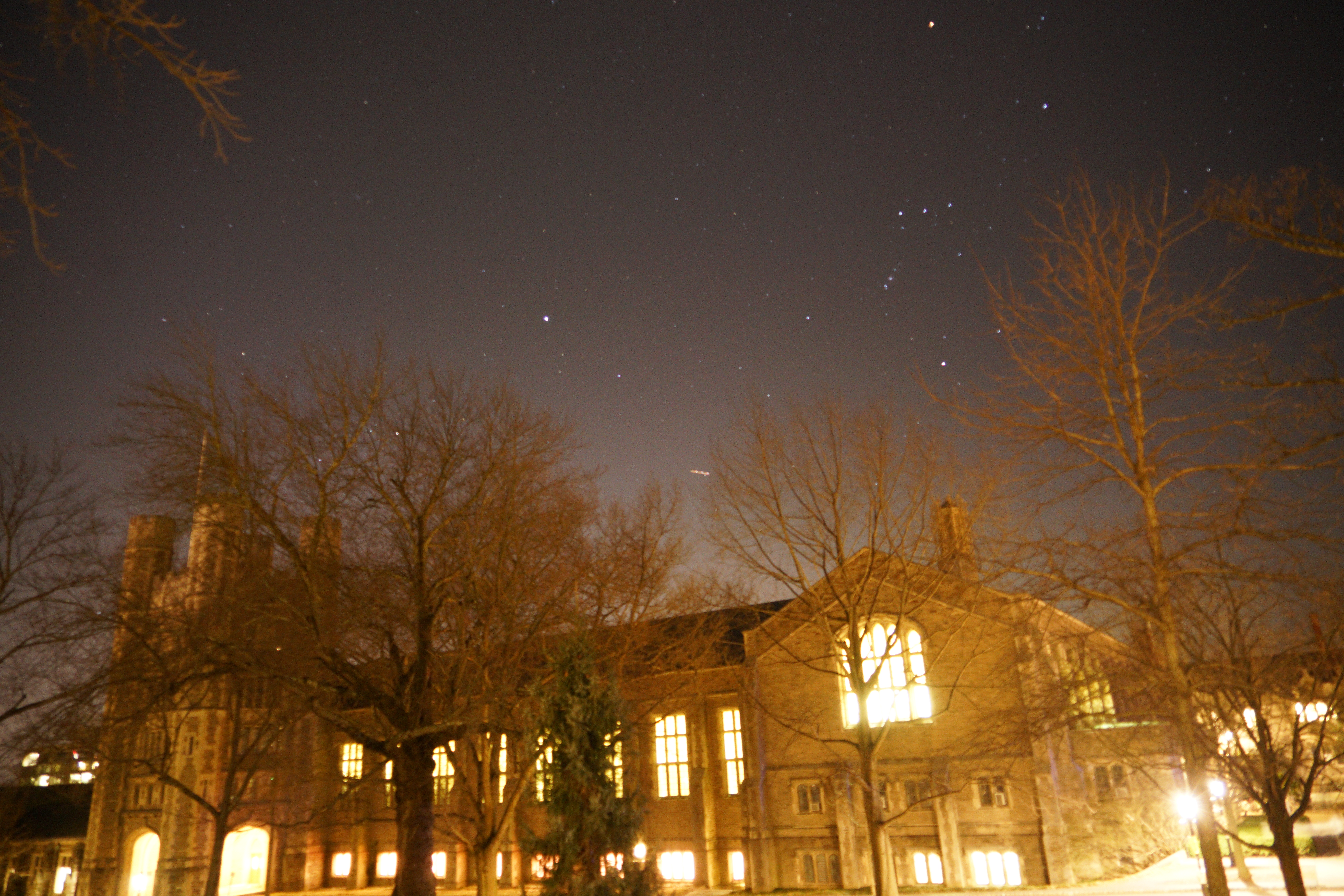 I grew up in a dark place with few sources of artificial light, so attending Princeton was a significant change. I have found my sleep being disrupted by harsh unshielded artificial lighting nearby my dorm room (Forbes College) despite my room shades being fully drawn. As someone who is sensitive to light changes (I wake with a sunrise clock for this reason) this is very challenging, requiring sleep aids such as melatonin and eye masks. While walking around campus at night, I have also found the artificial lighting to often be unnecessary and disruptive, with unused offices, classrooms, and construction sites shining brightly, floodlights lighting up the sides of locked buildings, or casting light directly up into the sky. The sky brightness from artificial lighting has even created a noteworthy haze on some occasions, visible as a purple hue. This is not only a tremendous waste of energy, it is disruptive to the environment (such as to migrating birds) and to student's circadian rhythms, adding to the stresses of a challenging campus. Additionally, I have found it very difficult to see the stars and other astronomical phenomena from most places on campus, another significant change from my home. For instance, when the Aurora Borealis was twice visible from New Jersey for the first time in recent memory, student's enjoyment of the phenomena (a likely once in a lifetime experience) was limited to witnessing color changes in the sky via camera phones, rather than the full dancing lightshow that should have been visible to the naked eye in a less light polluted environment. As a professional astrophotographer and amateur astronomer who is lucky enough to know the difference between a polluted and unpolluted sky, I feel a profound sense of loss being separated from the sky.