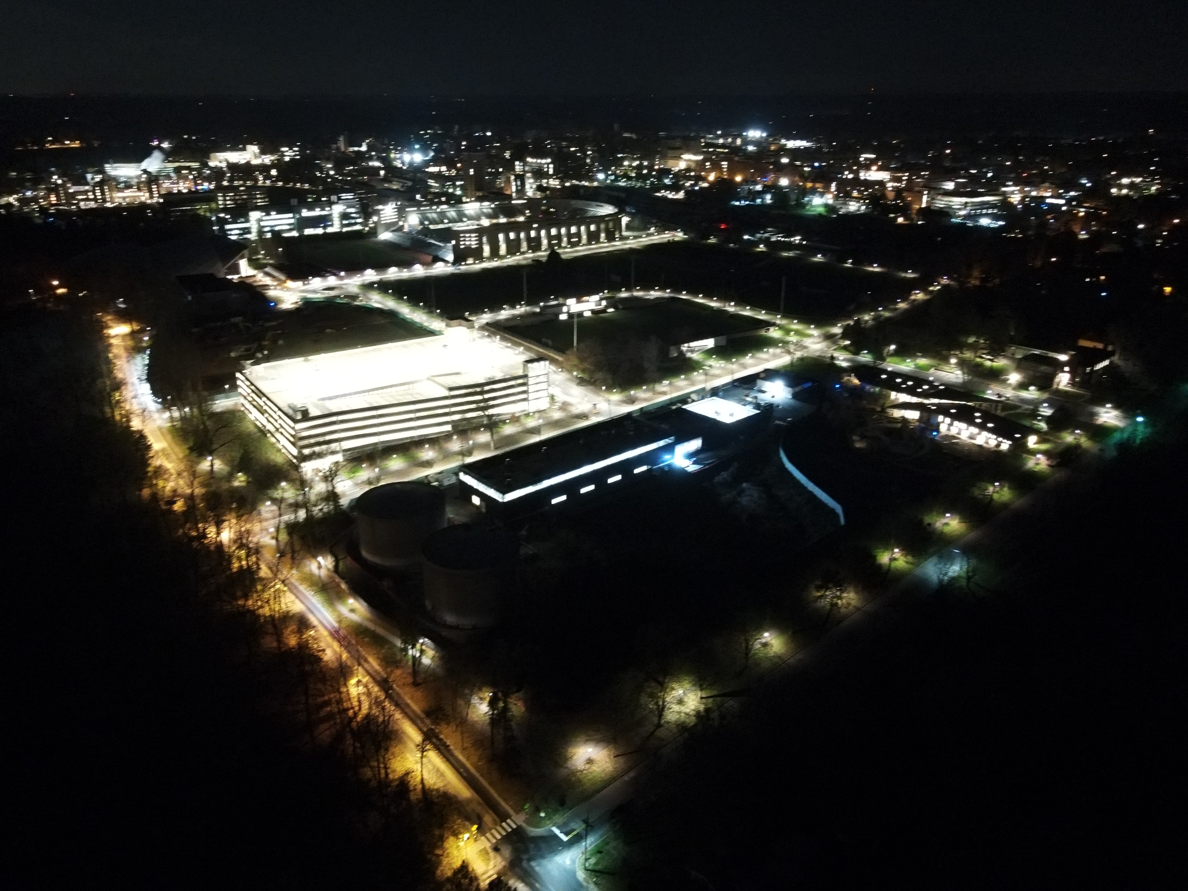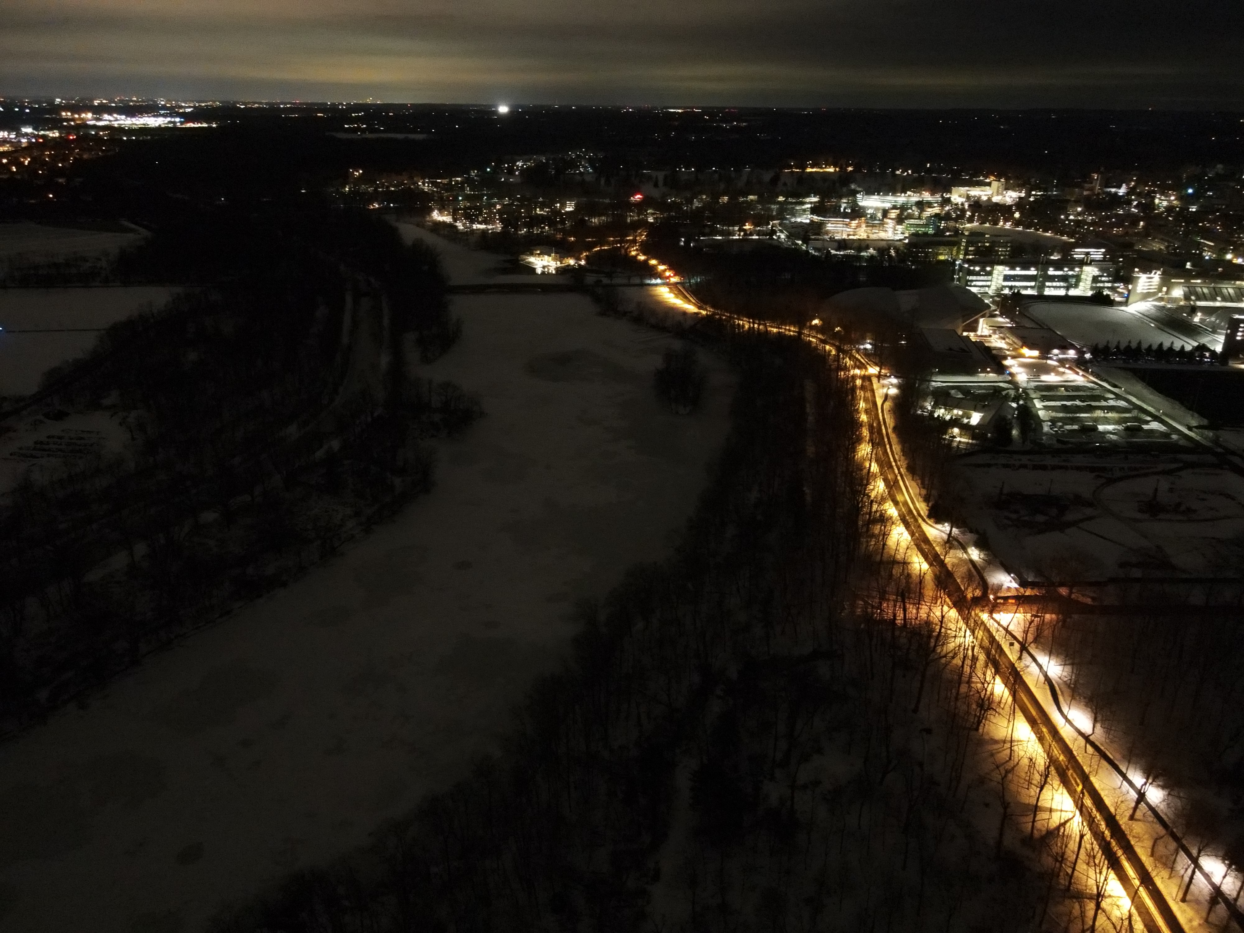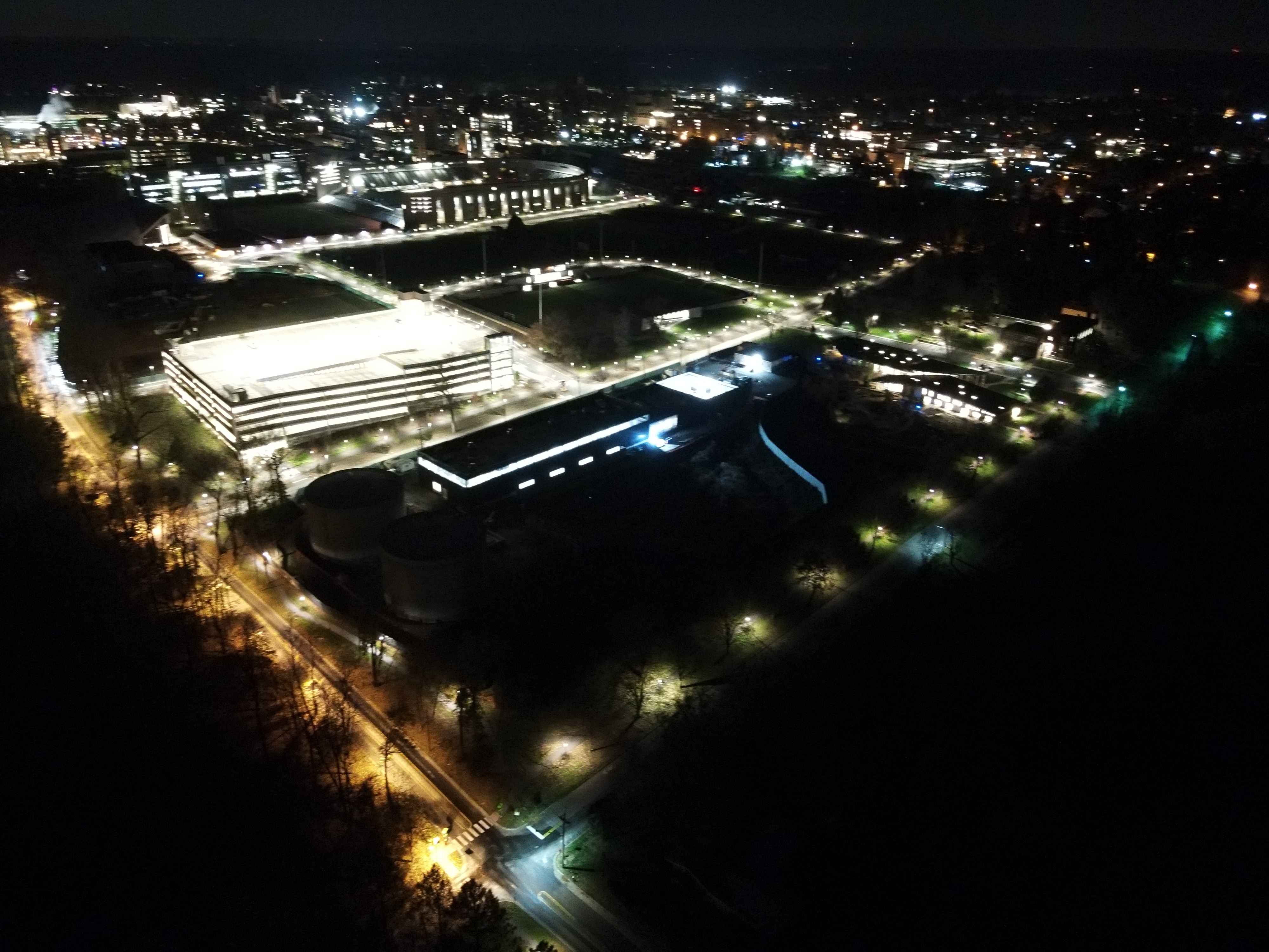 A recent example: some of our fragile ecosystem was lit up by unshielded "area" lights (Faculty Road). The field across the lake is now constantly illuminated.