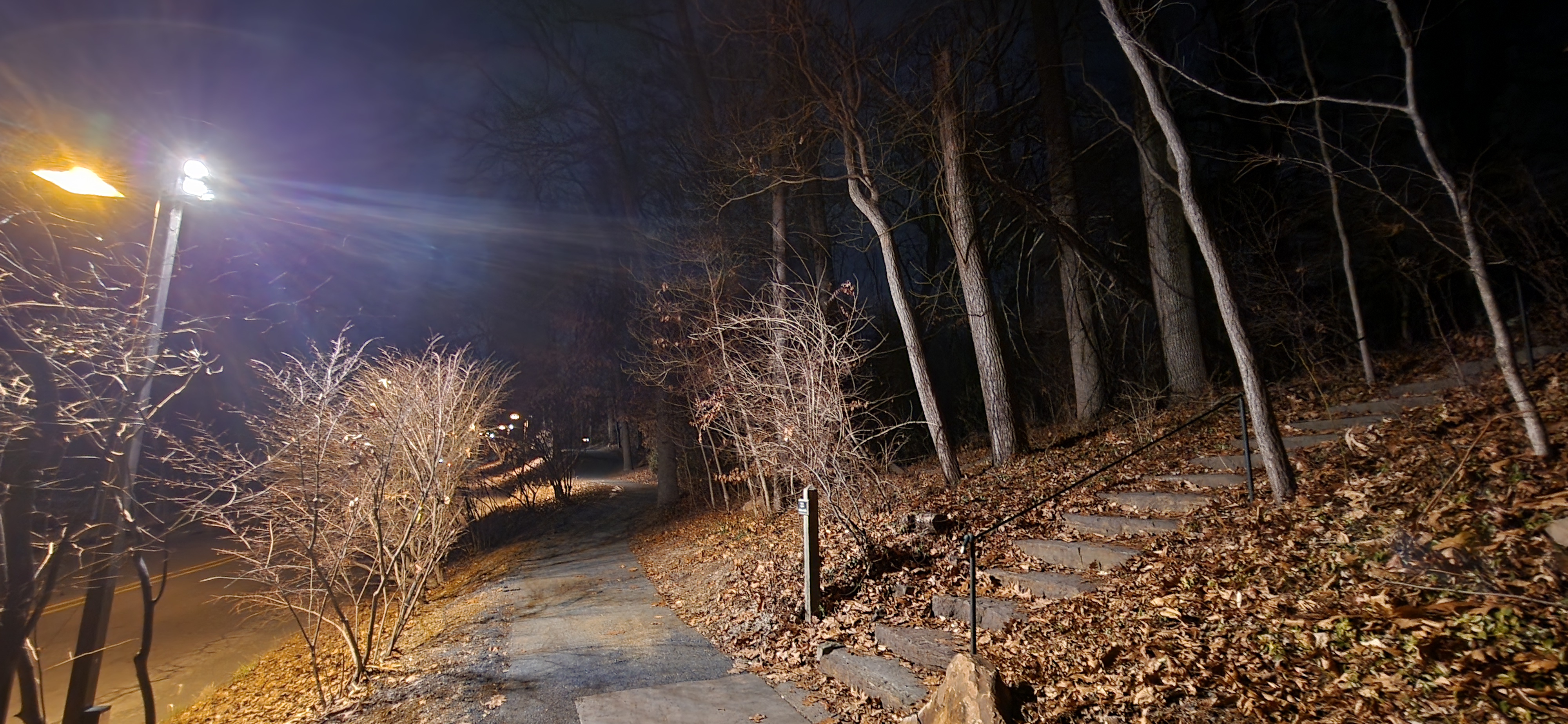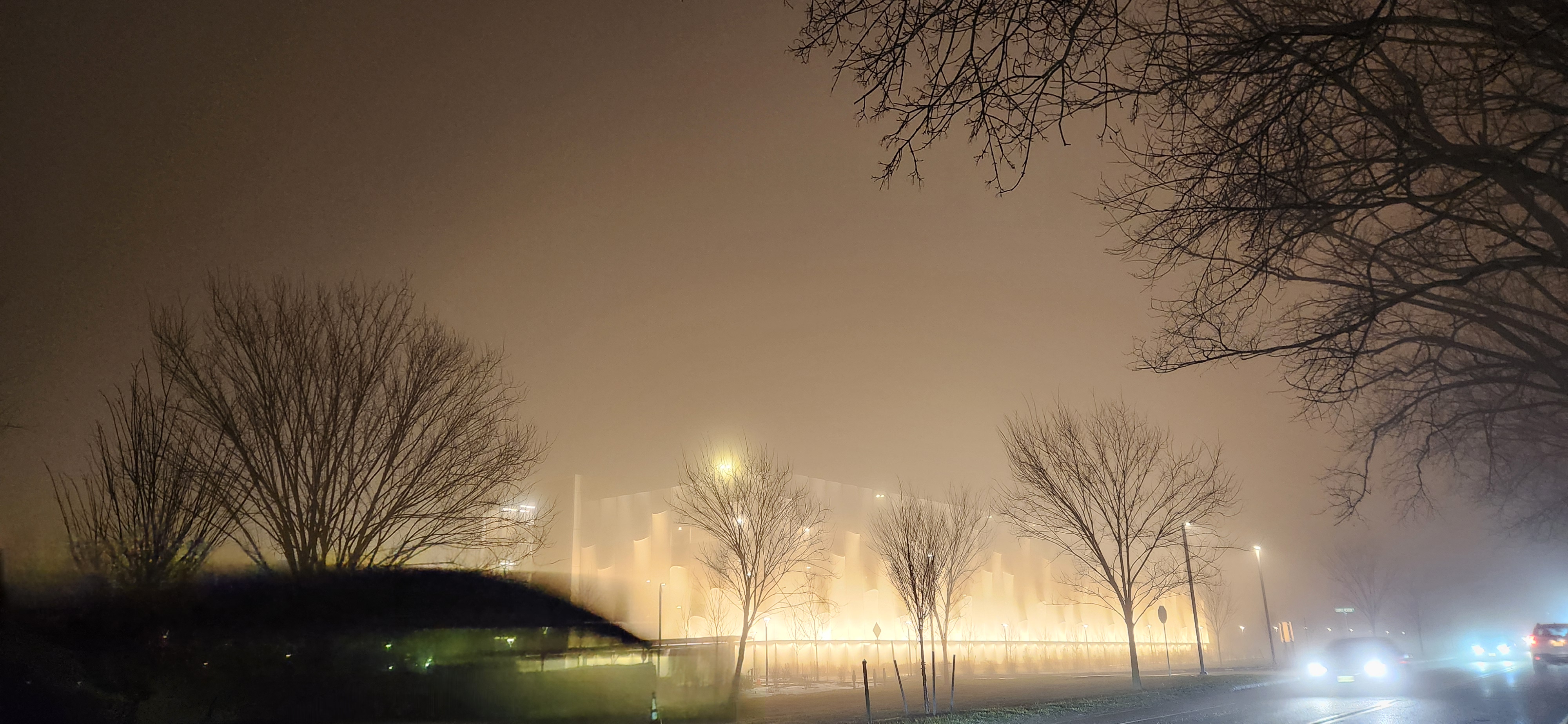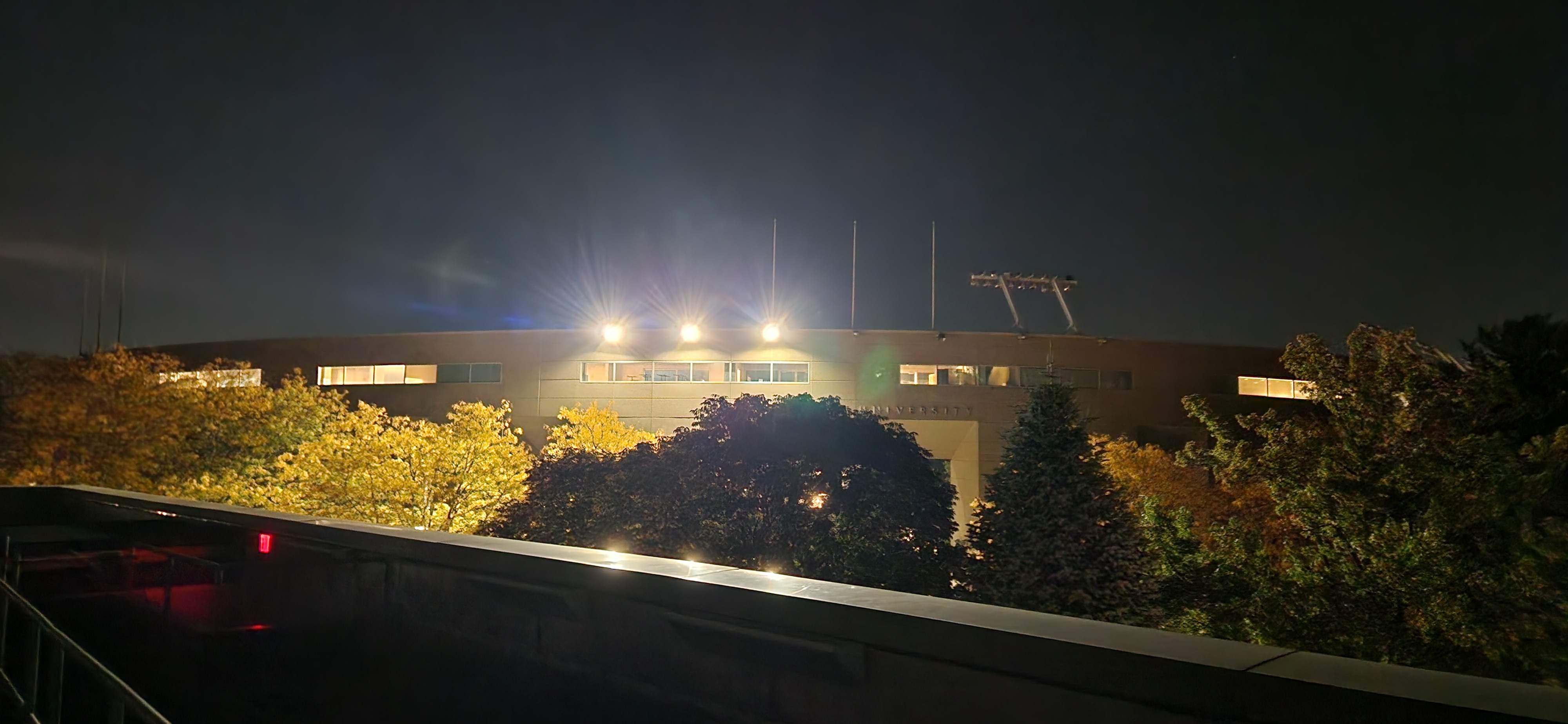A recent example: some of our fragile ecosystem was lit up by unshielded "area" lights (Faculty Road). The field across the lake is now constantly illuminated.