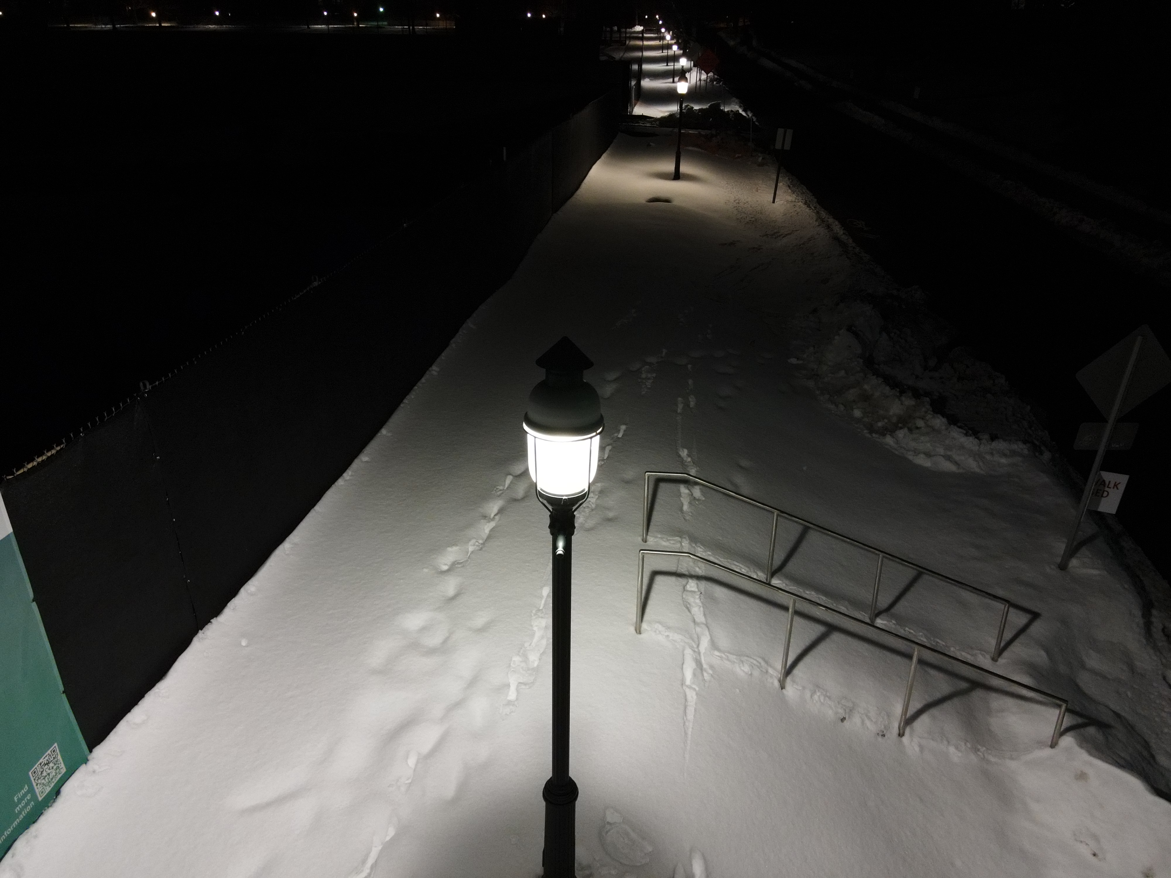 This poor example for glare is on Ivy Lane, next to the EAS construction. The "temporary" lights have been up for over a year. They shine mostly upward and blind pedestrians.